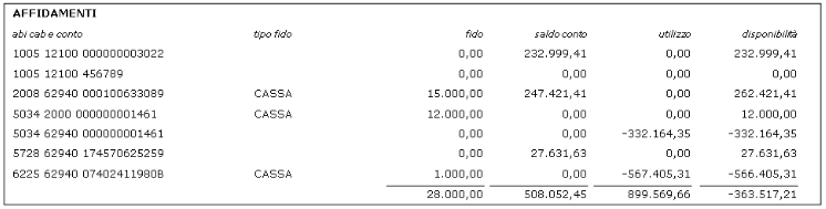 La Gestione Fidi e Finanziamenti permette di inserire gli importi degli affidamenti stipulati con le banche con le quali l’azienda intrattiene i rapporti con storicizzazione in base ai periodi di validità dei Fidi.