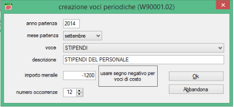 Tramite la procedura Voci Extracontabili è possibile inserire, per i periodi futuri, i costi e i ricavi per i quali non si è ancora perfezionato l’evento di pagamento/incasso. Tali dati verranno conteggiati nella gestione dei flussi di cassa previsionali con possibilità di effettuare, a tempo debito, la relativa registrazione in contabilità.